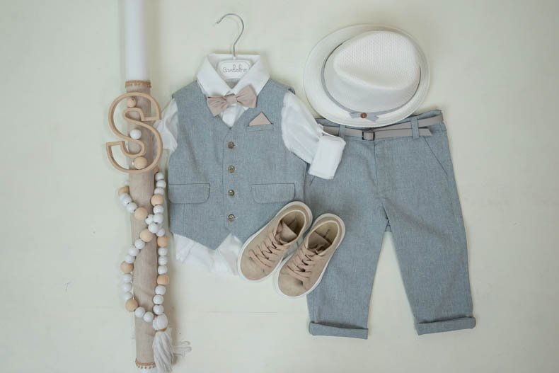 Βαπτιστικό κοστούμι Piccolino Silvio-Grey σε χρώμα White-Raf. Περιλαμβάνει γιλέκο μονόκουμπο…