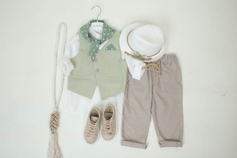 Βαπτιστικό κοστούμι Piccolino Silvio-Bianco σε χρώμα White-Mint. Περιλαμβάνει γιλέκο μονόκουμπο…